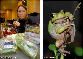 The couple believe the frog had been hiding in either the strawberries, mixed salad or celery which they had bought at Tesco in Quedgeley.